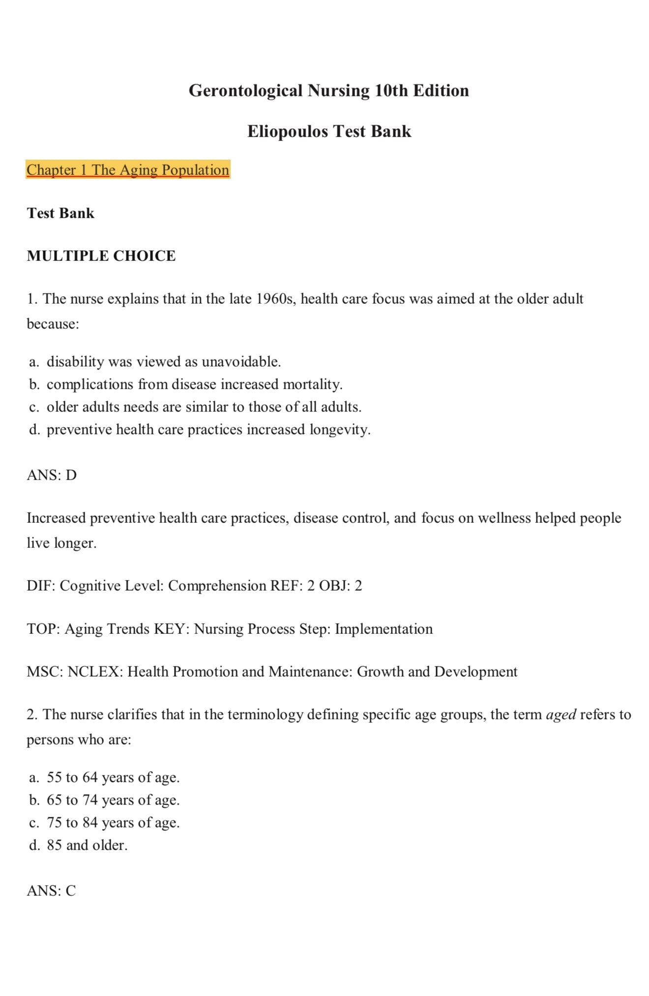 TEST BANK Gerontological Nursing 10th Edition Eliopoulos
