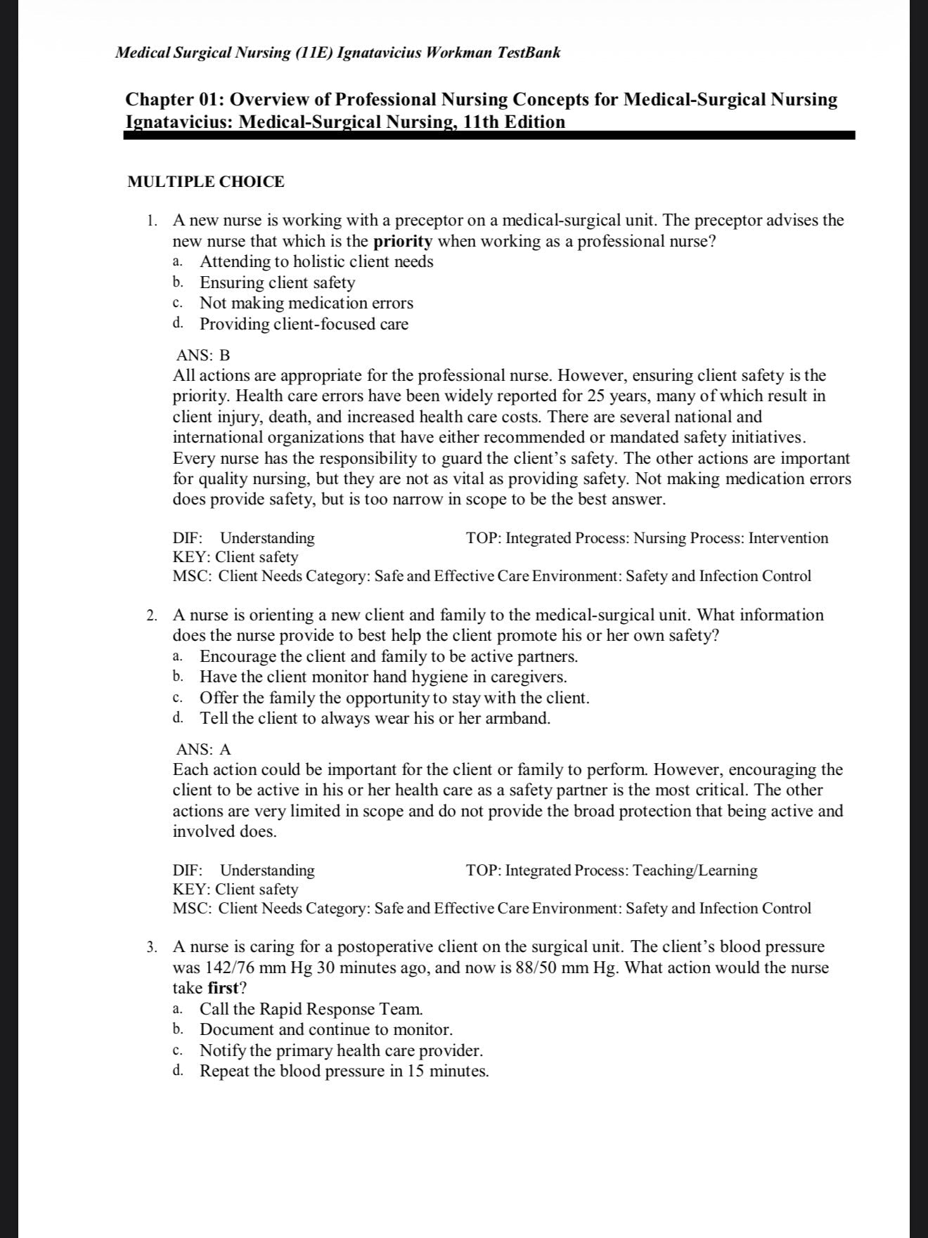 This Test Bank is designed to accompany the 11th Edition of Medical-Surgical Nursing: Concepts for Clinical Judgment and Collaborative Care by Ignatavicius.